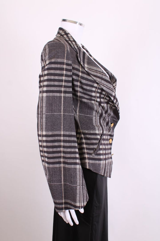 Sandro Ferrone Pleated Shimmer Check Skirt Black/White S