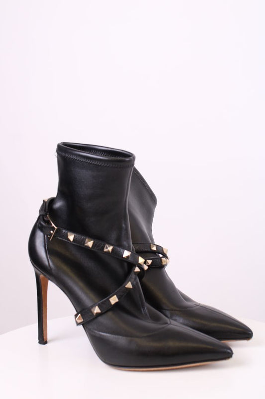 Valentino Rockstud Wrap Strap Ankle Boots Black 39