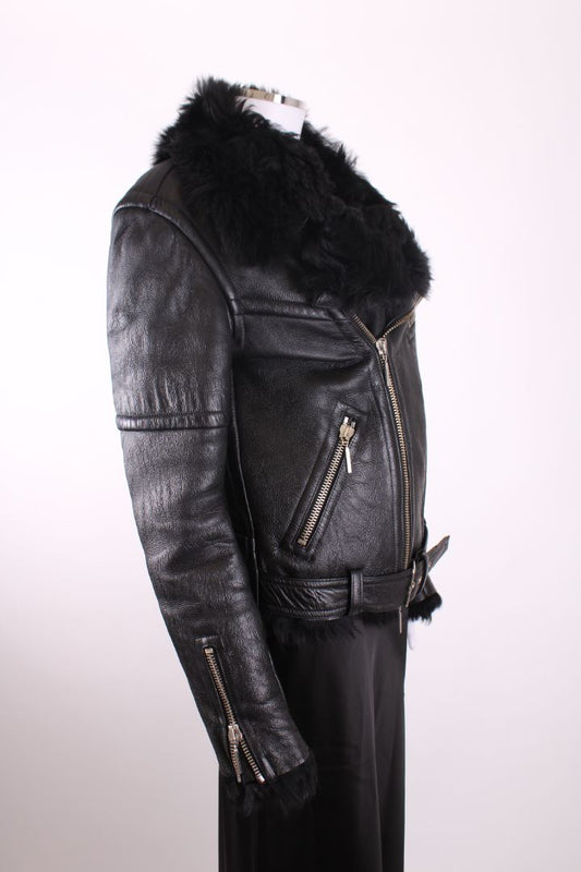 Plein Sud Jeans Leather Shearling Jacket Black 10