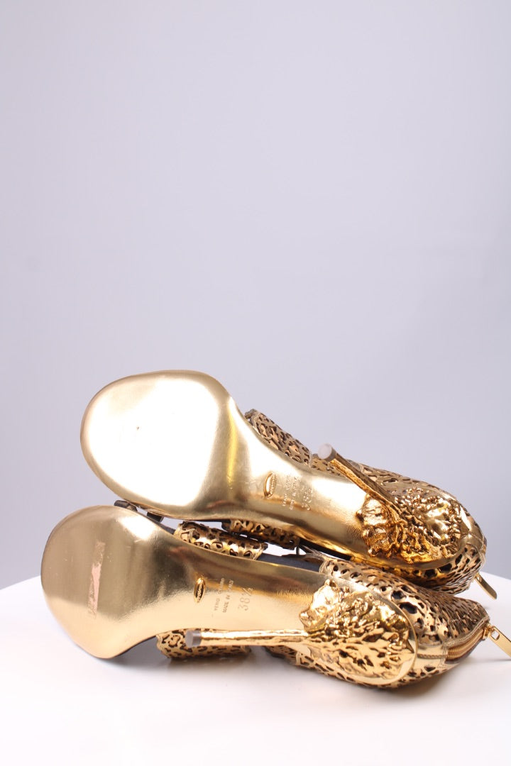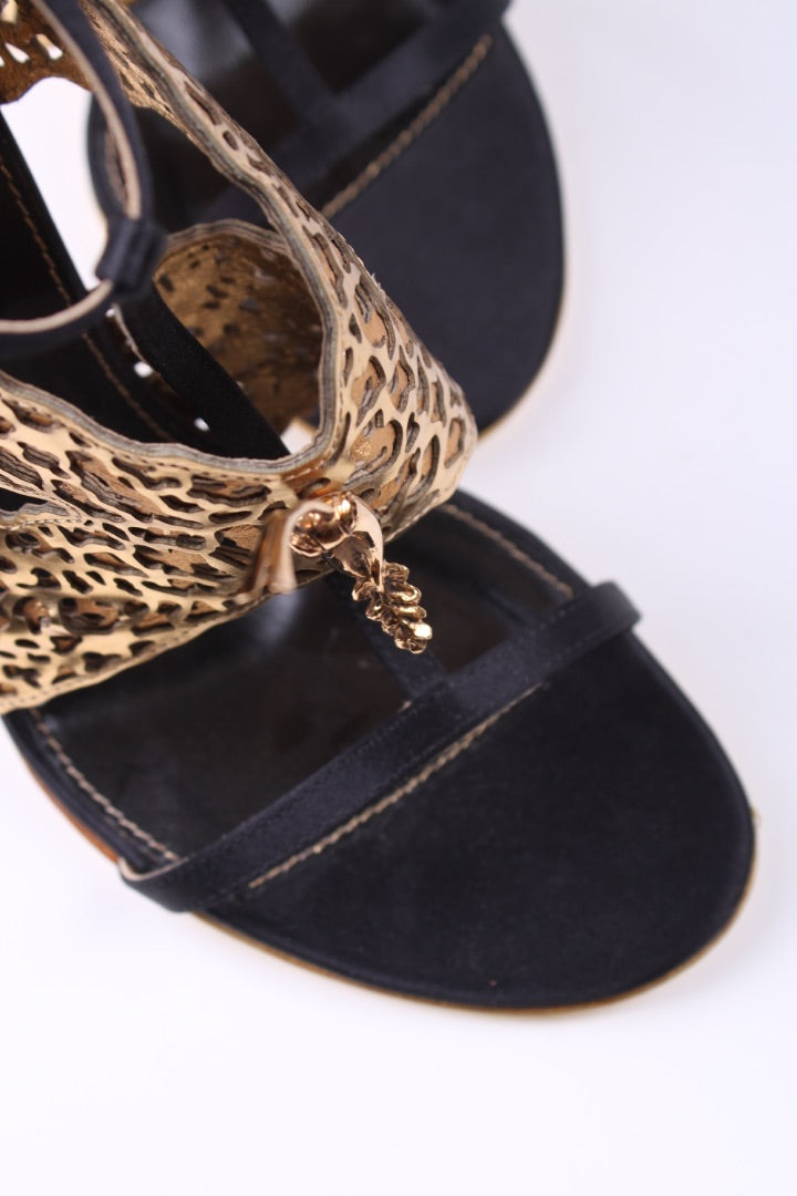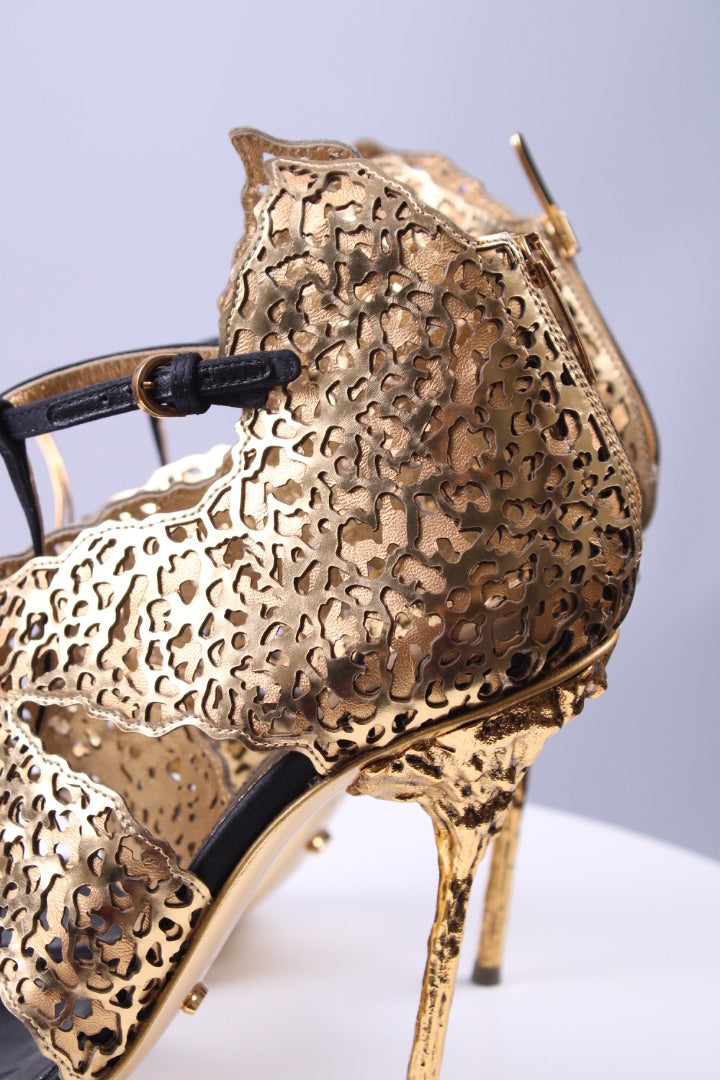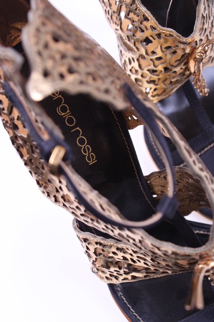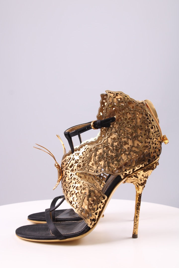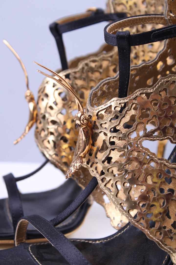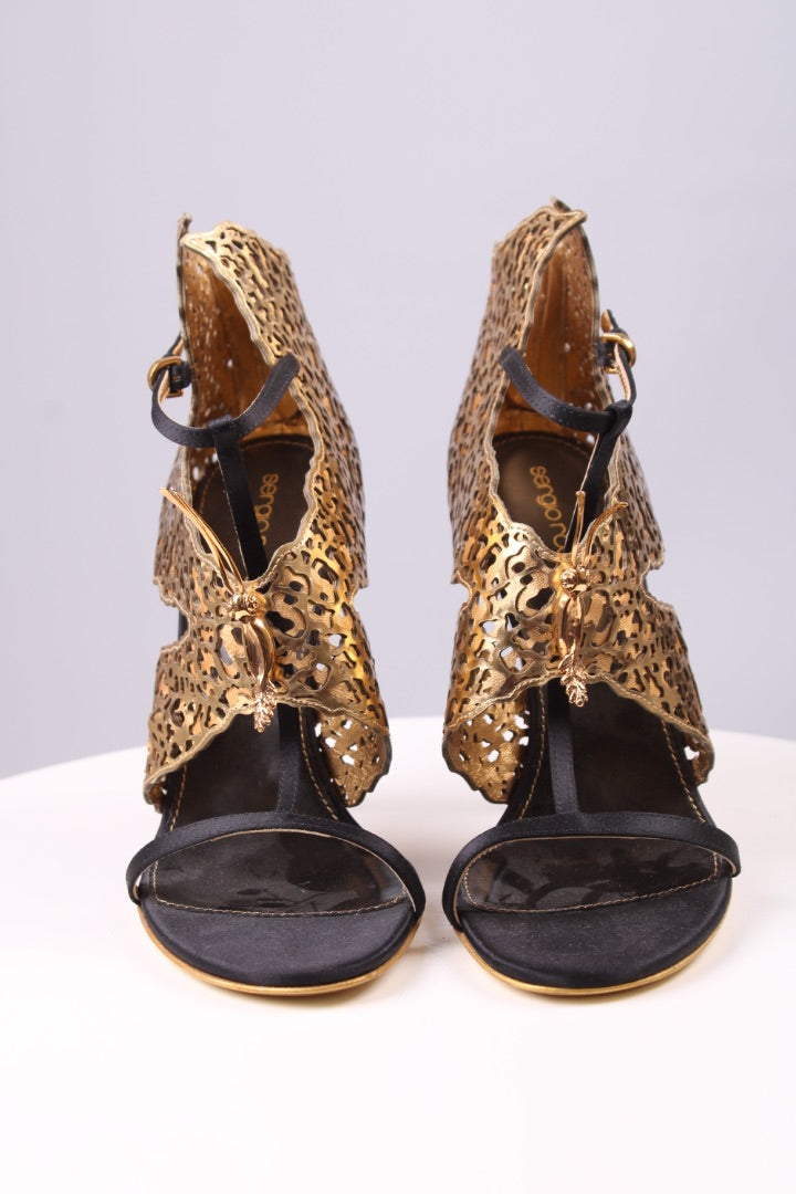 Sergio Rossi Gold butterfly ankle strap heel Gold/black 38.5