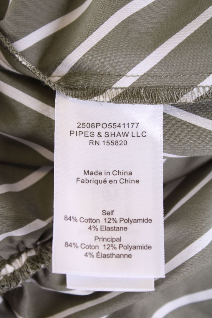Veronica Beard L/S Ruched Stripe Shirt Green/ White XS